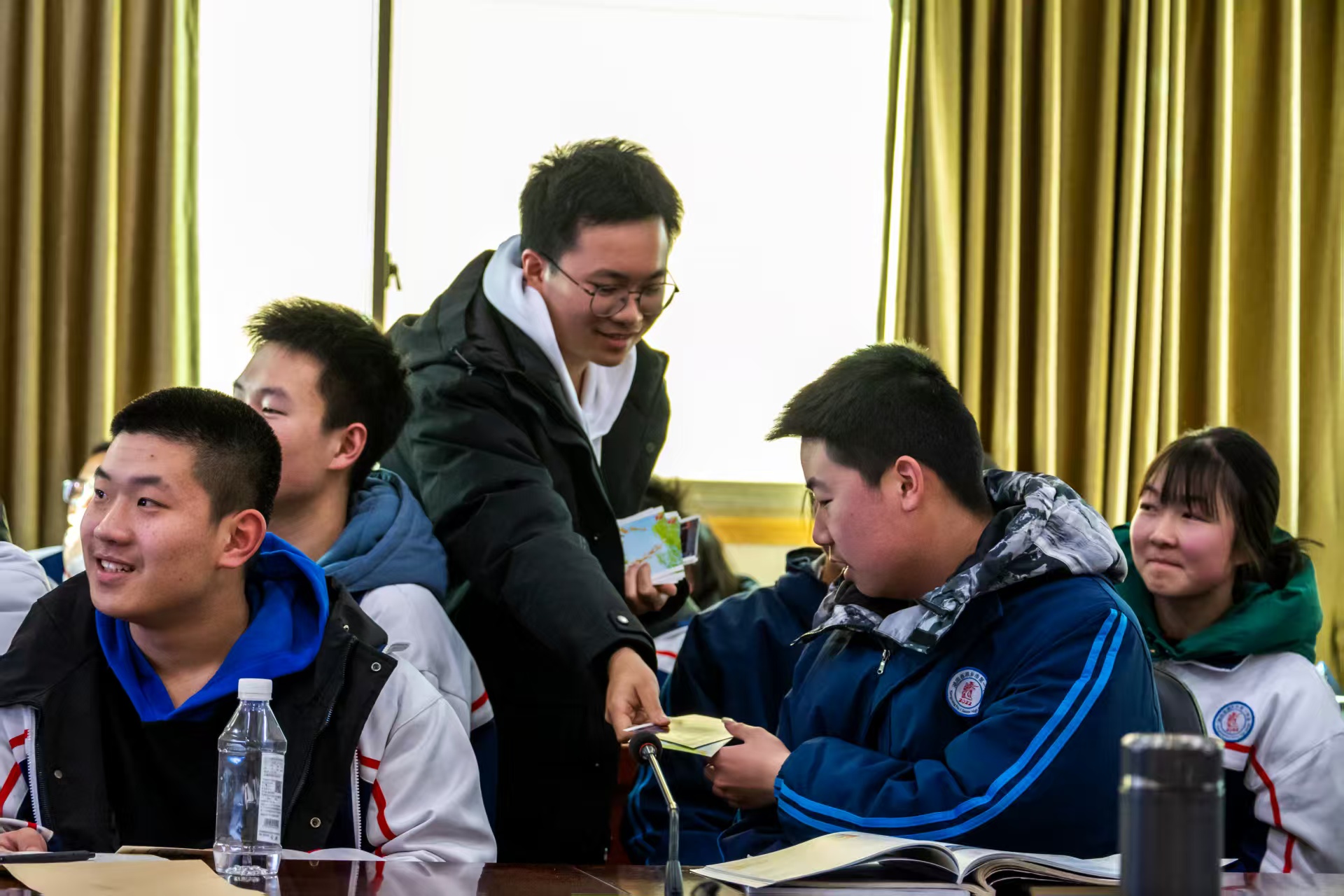 图为实践队在湘乡市第一中学开展“北航日”科普活动