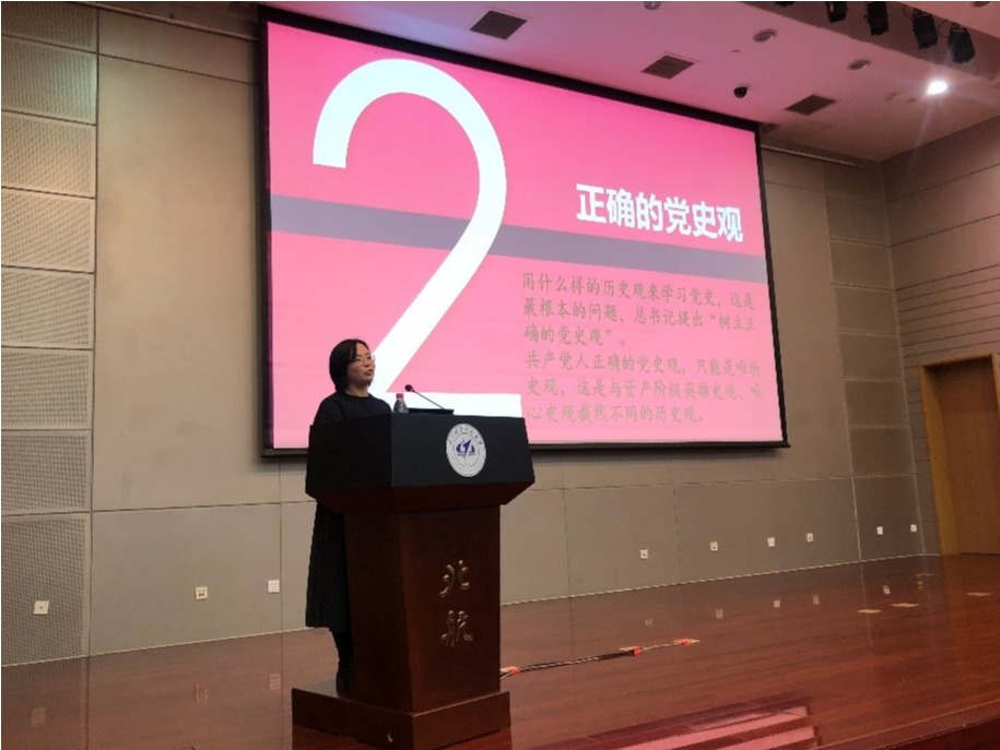 刘娜娜老师从学习两个历史决议,《关于若干历史问题的决议》(1945年8月)和《关于建国以来党的若干历史问题的决议》(1981年6月)讲起,深入阐述了如何树立正确的党史观和反对历史虚无主义。刘娜娜老师运用丰富的资料生动阐讲述了用什么样的历史观来学习党史,这是最根本的问题,习近平总书记提出树立正确的党史观的内涵、学习党史要抓主题主线和主流本质的方法以及历史虚无主义的表现和危害。